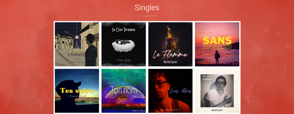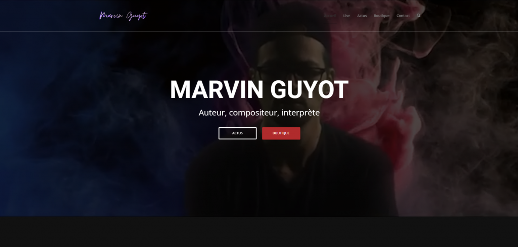 Bienvenue sur mon site ! Je suis Marvin Guyot, auteur, compositeur et interprète. Ce site a été conçu avec soin par OUTINI, mon agence qui reflète ma vision artistique et professionnelle. L’objectif de ce projet ? Créer une plateforme qui vous plonge dans mon univers musical, avec toutes mes créations, mes actualités, mes projets et plus encore.